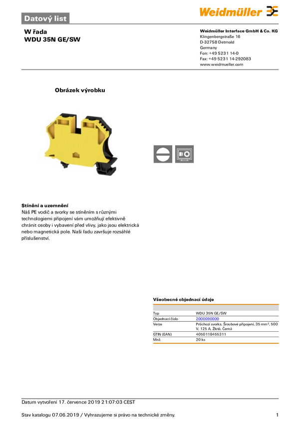 Złączka szynowa przelotowa Weidmüller 2000090000 śrubowe 20 szt.