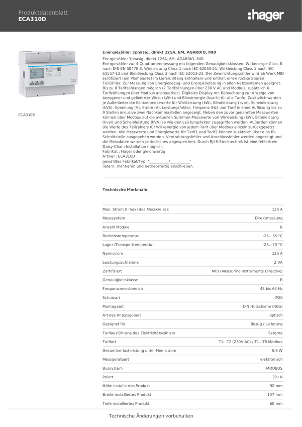 Miernik prądu przemiennego, trójfazowy Hager ECA310D