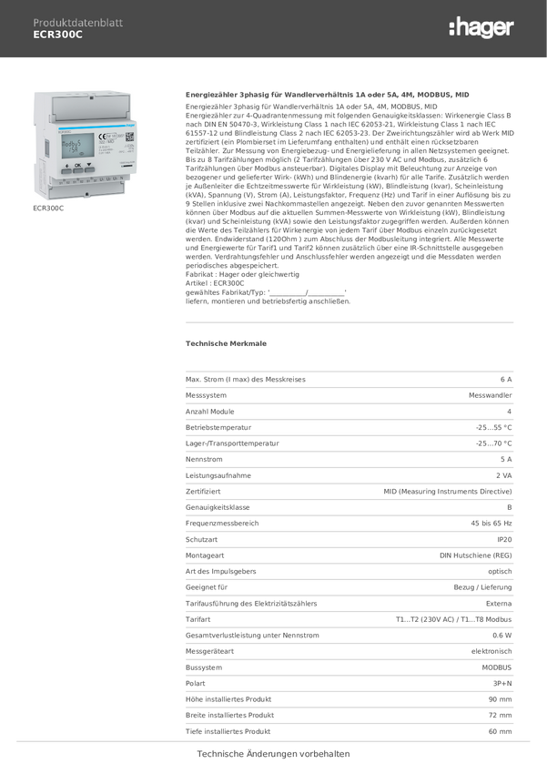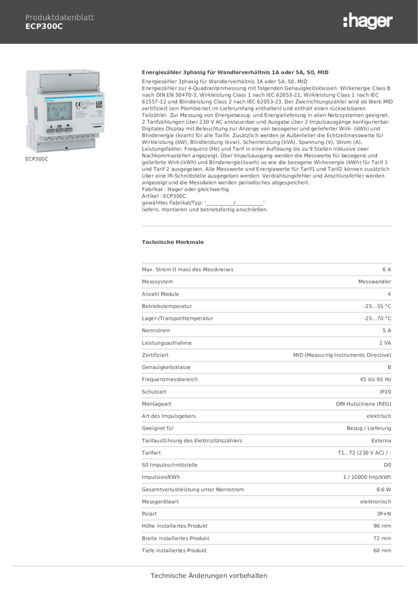 Miernik prądu przemiennego, trójfazowy Hager ECP300C