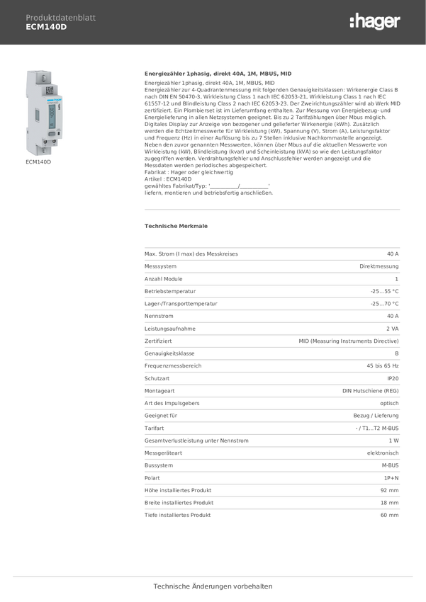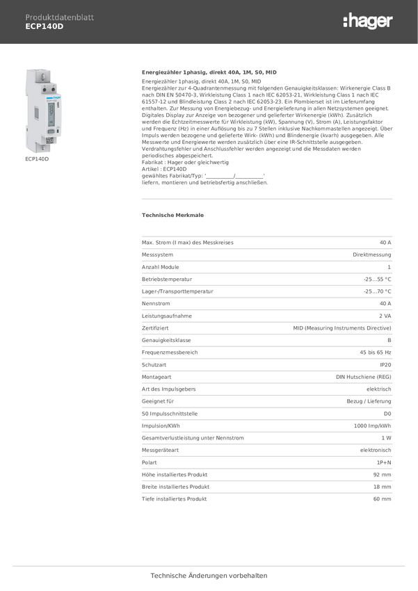 Licznik prądu przemiennego Hager ECP140D