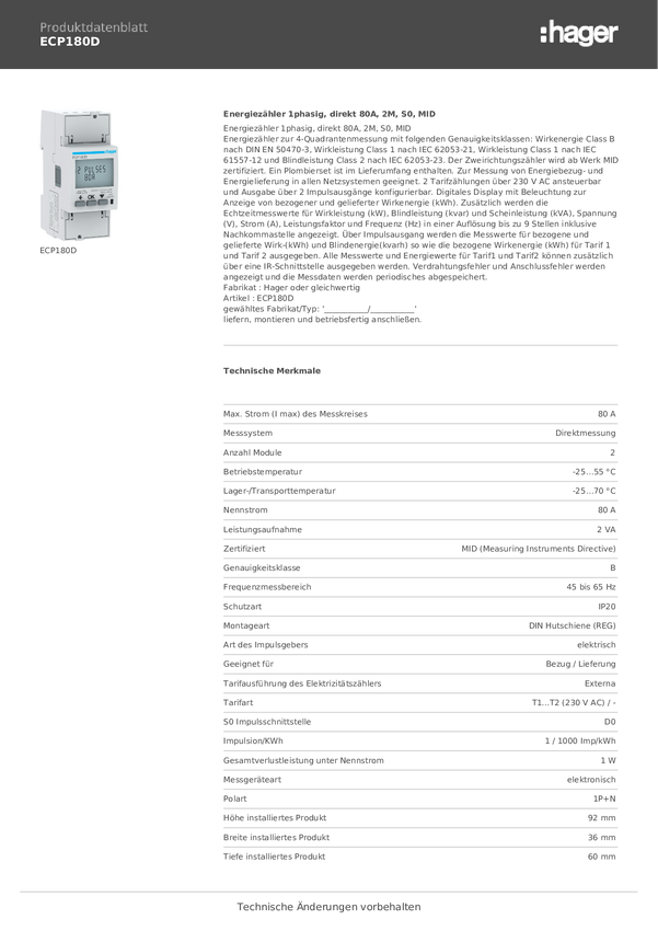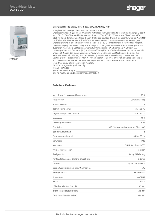 Licznik prądu przemiennego Hager ECP180D