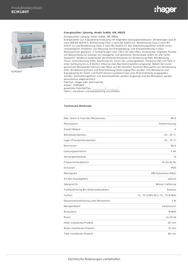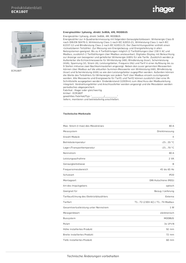 Licznik prądu przemiennego Hager ECM180T
