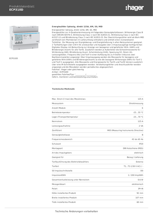 Miernik prądu przemiennego, trójfazowy Hager ECP310D
