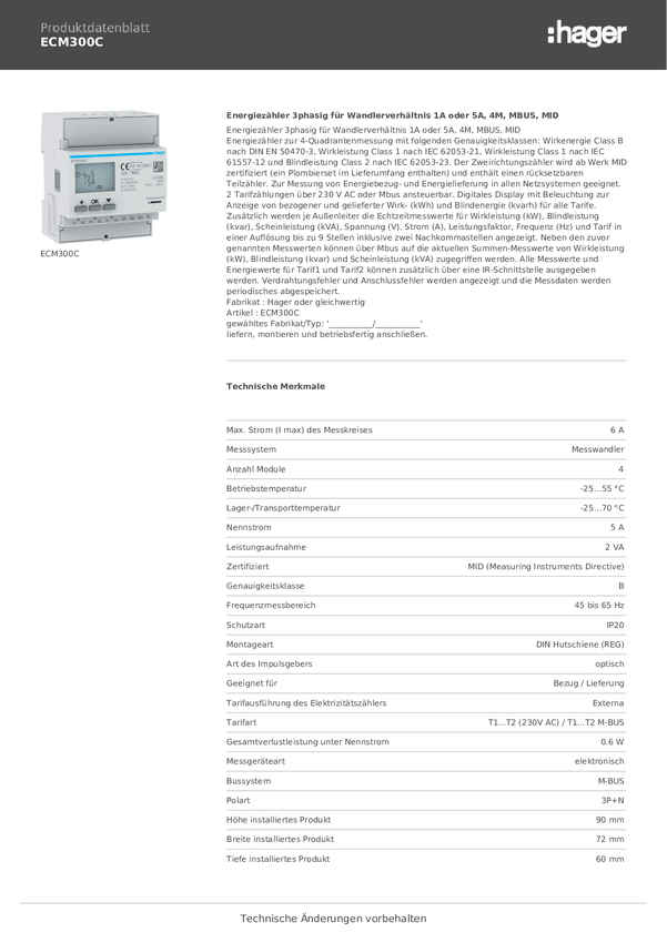 Miernik prądu przemiennego, trójfazowy Hager ECM300C