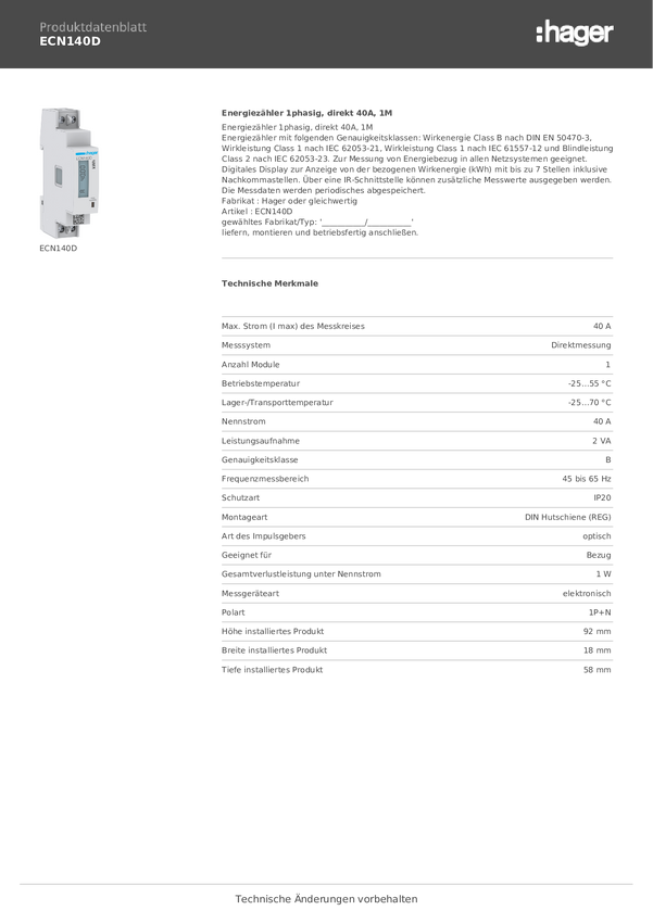 Licznik prądu przemiennego Hager ECN140D
