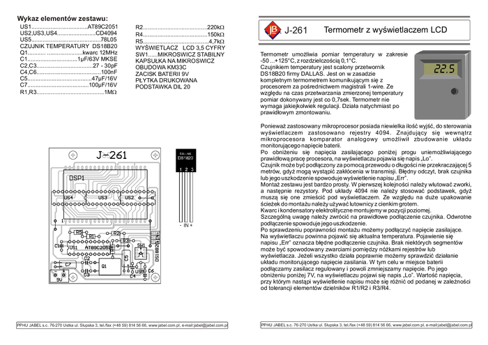 J-261 Przenośny termometr z wyświetlaczem LCD - zestaw do montażu