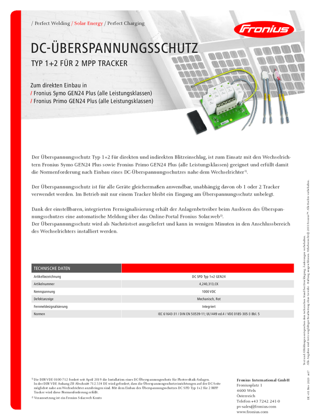 Fronius DC SPD Typ 1+2 GEN24 4,240,313,CK Ochrona przed przepięciami