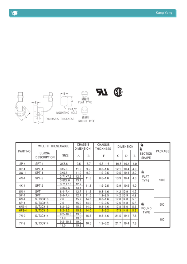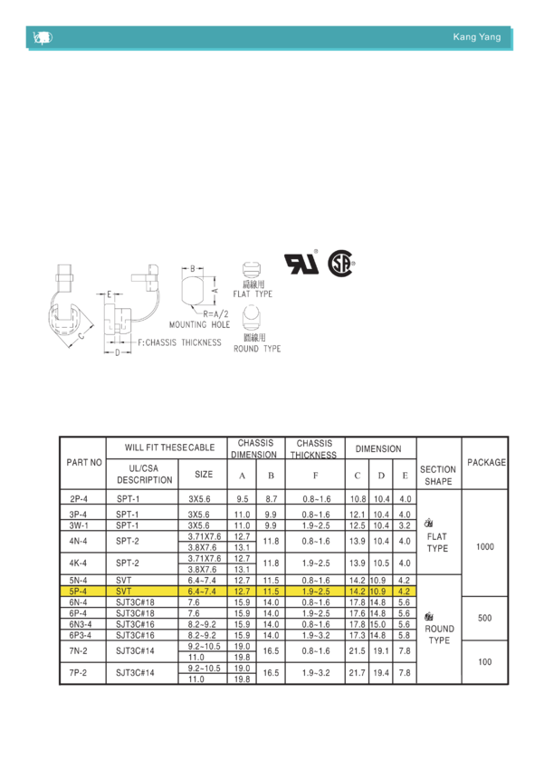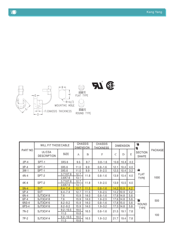Przepust do kabla okrągłego Ø 6.4 mm, F0.8÷1.6mm