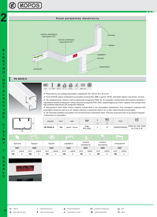 Pokrywa przepustowa do listwy 90x55 biała 8407