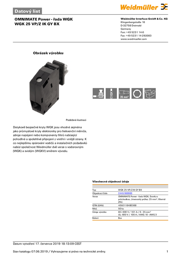 Złącze przepustowe Weidmüller 2445160000 śrubowe 50 szt.