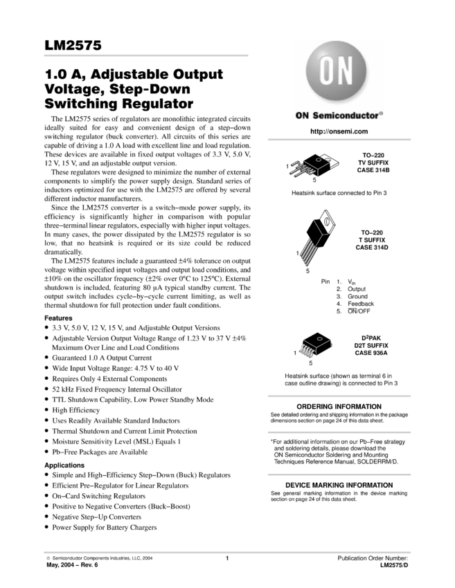 Przetwornica napięcia step-down, 15V, 1A, TO220-5