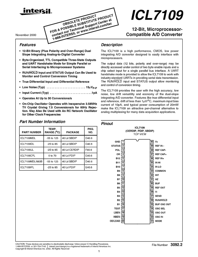 12-bitowy przetwornik A/C, wyjście 3 stanowe, DIL40