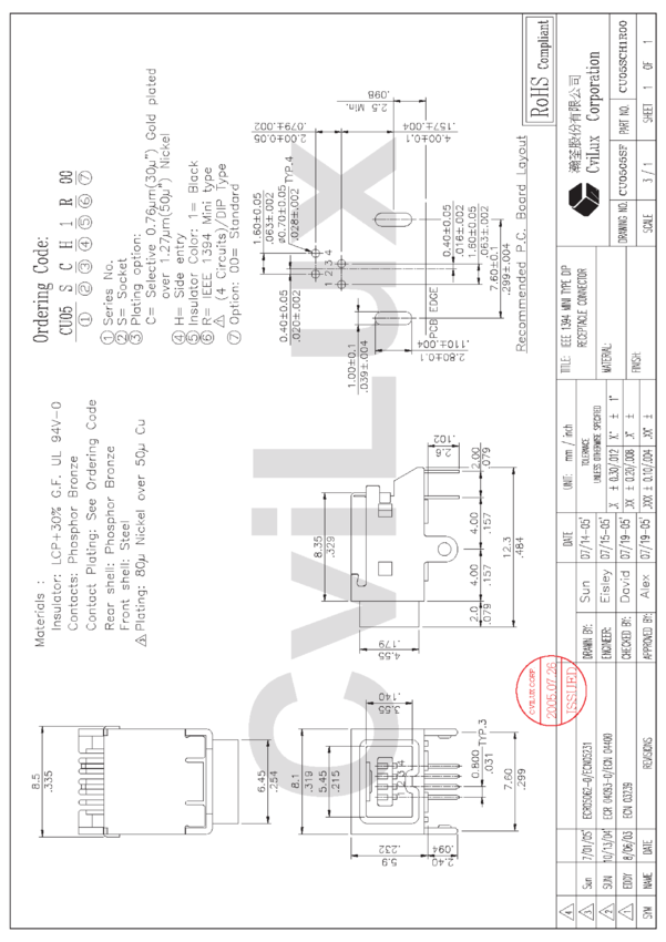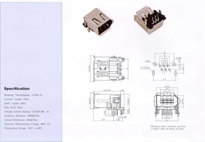 Miniaturowe gniazdo IEEE 1394, 4-stykowe, kątowe, do montażu przewlekanego