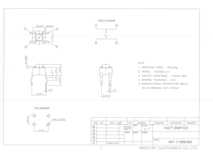 Łącznik miniaturowy , o sile nacisku 160gf, do montażu przewlekanego