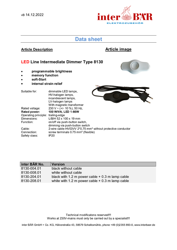 Ściemniacz przewodowy LED interBär 8130-204.01, 66 W
