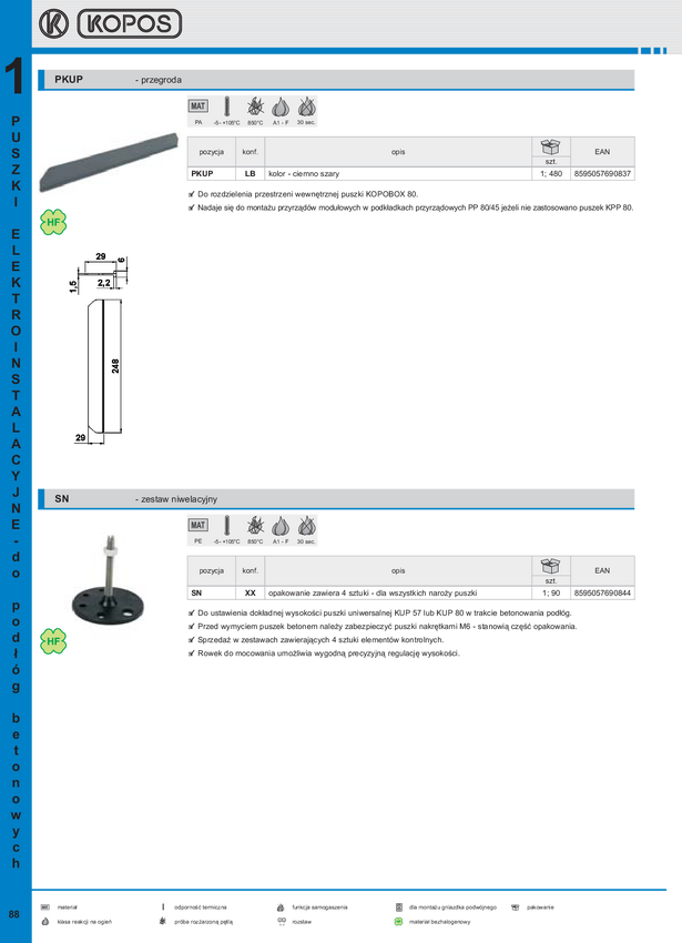 Puszka podłogowa (floorbox) firmy Kopos, przeznaczona do pionowego montażu 6 m