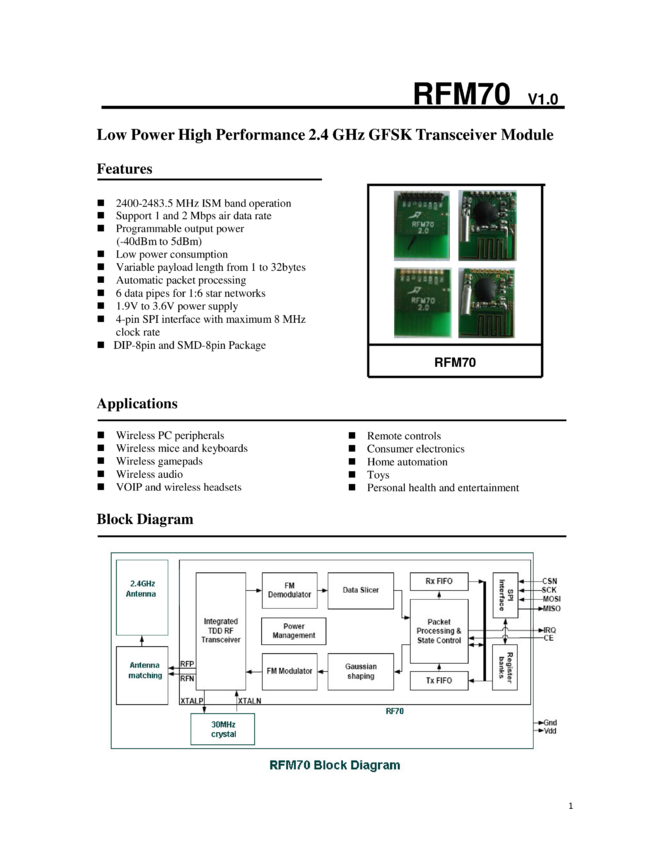 Transceiver RF 2.4 GHz, DIP, 12.8 x 16.8 mm, zasięg do 80 m (open air), następca wersji RFM70-D, moduł przeznaczony do montażu ręcznego