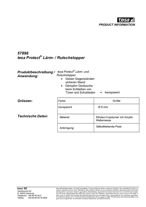 Nóżki antywibracyjne TESA 57898-00000-00, (O) 8 mm, przezroczyste