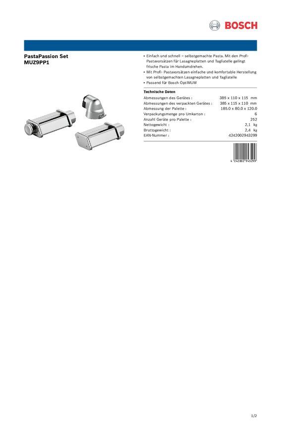 Bosch Haushalt MUZ9PP1 Przystawka do makaronu stali szlachetnej