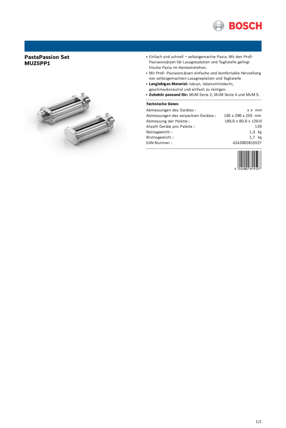Bosch Haushalt MUZ5PP1 Przystawka do makaronu stali szlachetnej