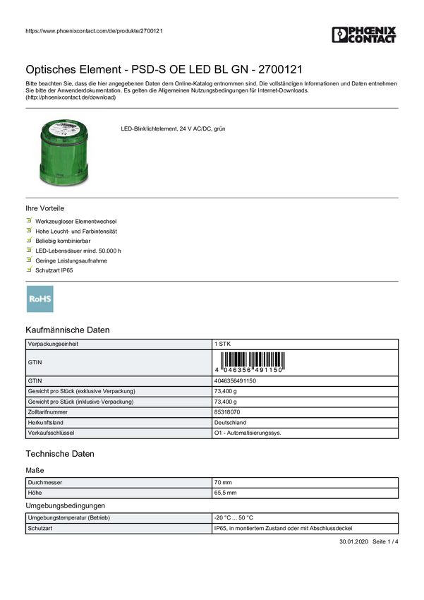 Phoenix Contact PSD-S OE LED BL GN Element LED zielony 24 V DC/AC 1 szt.