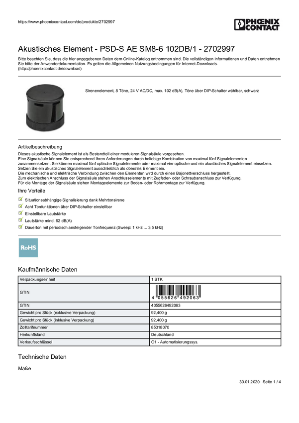 Syrena miniaturowa Phoenix Contact PSD-S AE SM8-6 102DB/1 2702997 1 szt.