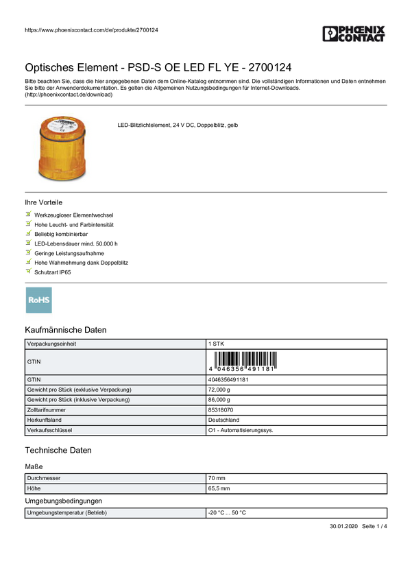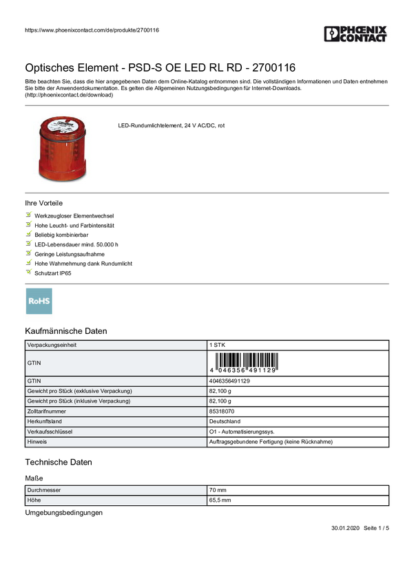 Phoenix Contact PSD-S OE LED MC Element LED przejrzysty, czerwony, zielony, żółty, niebieski, biały, fioletowy, turkus