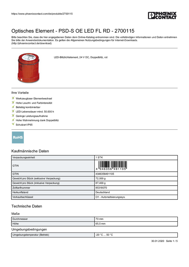 Phoenix Contact PSD-S OE LED FL RD Element LED czerwony 24 V/DC 1 szt.
