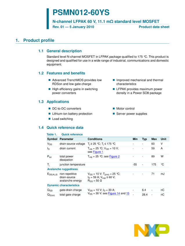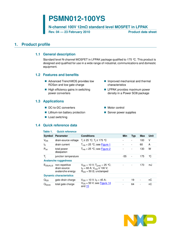 N-channel 100 V, 12 mΩ logic level MOSFET in LFPAK56