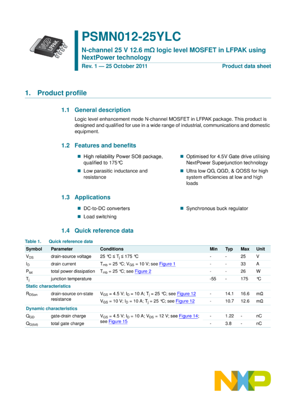 N-channel 25 V 12.6 mΩ logic level MOSFET in LFPAK using NextPower technology