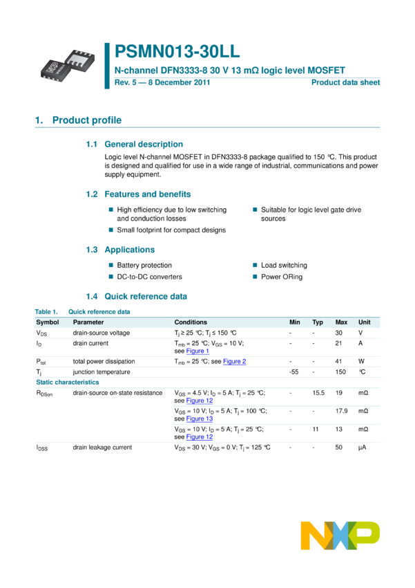 N-channel 30 V 13.6 mΩ logic level MOSFET in LFPAK using NextPower technology