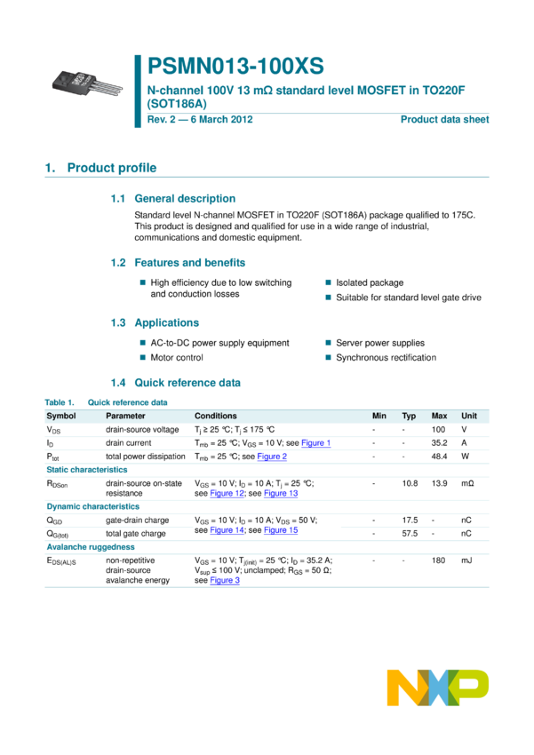 N-channel 100 V 13 mΩ standard level MOSFET in LFPAK56