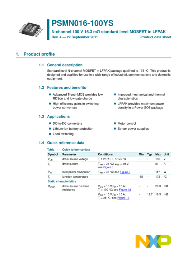 N-channel 100 V 16.3 mΩ standard level MOSFET in LFPAK