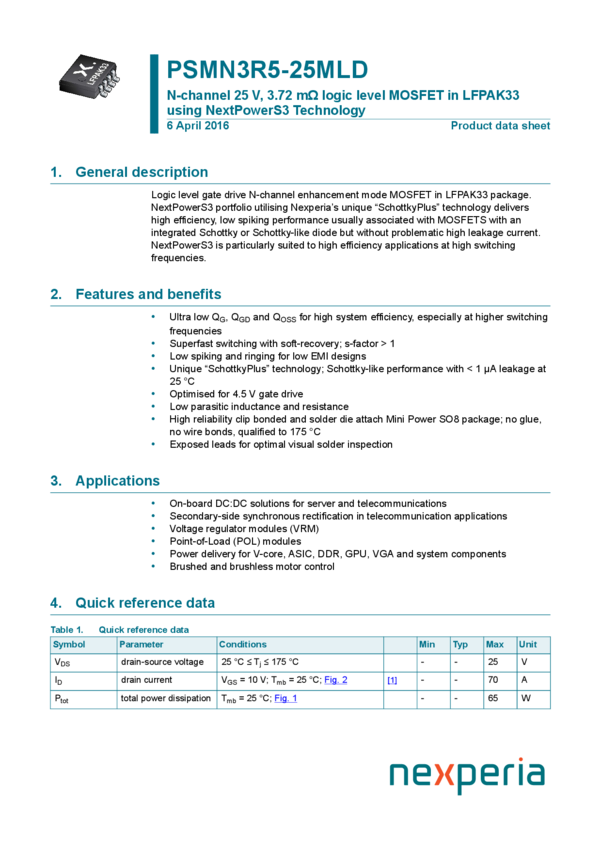 N-channel 25 V, 3.72 mΩ logic level MOSFET in LFPAK33 using NextPowerS3 Technology