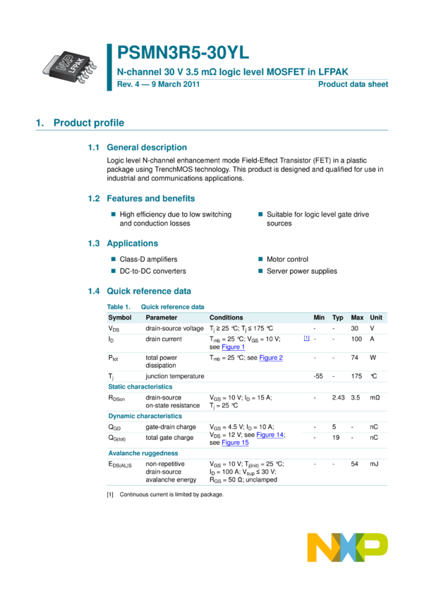 N-channel 30 V 3.5 mΩ logic level MOSFET in LFPAK