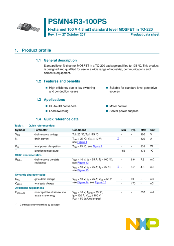 N-channel 100 V 4.3 mΩ standard level MOSFET in TO-220