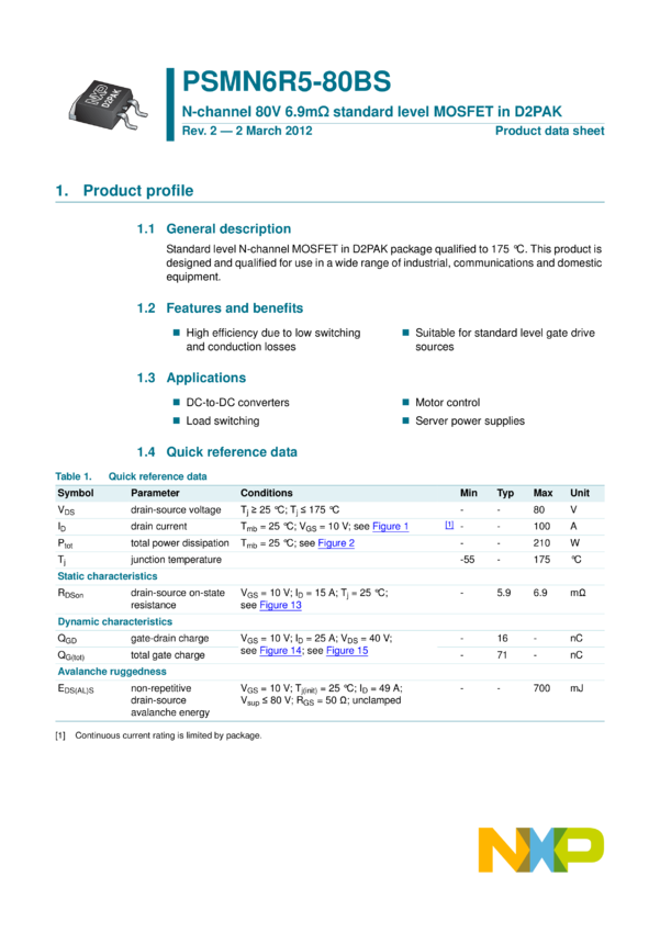 N-channel 80V 6.9mΩ standard level MOSFET in D2PAK