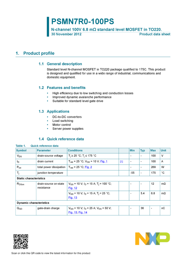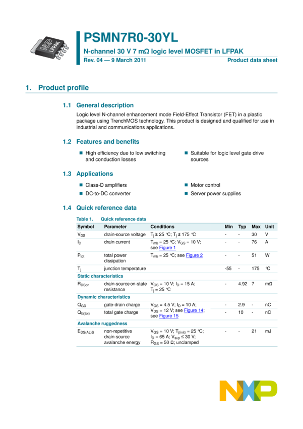 N-channel 30 V 7.1 mΩ logic level MOSFET in LFPAK using NextPower technology