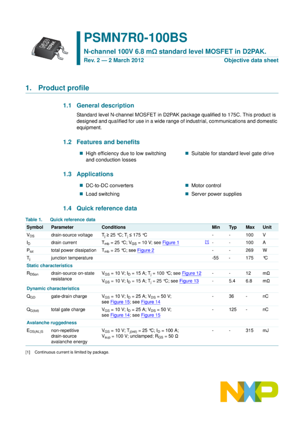 N-channel 100V 6.8 mΩ standard level MOSFET in D2PAK.