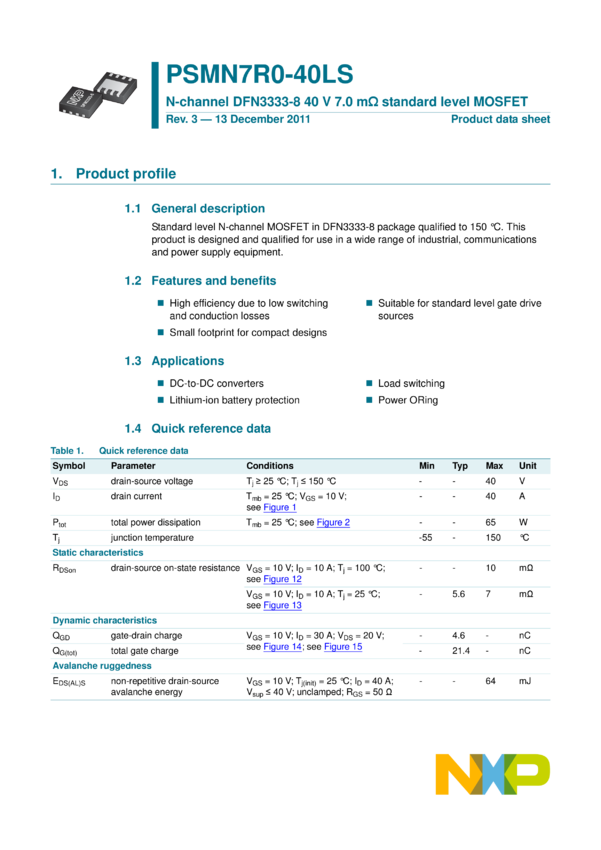 N-channel 30 V 7 mΩ logic level MOSFET in LFPAK33 using NextPower Technology