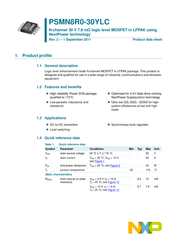 N-channel 30 V 7.9 mΩ logic level MOSFET in LFPAK using NextPower technology