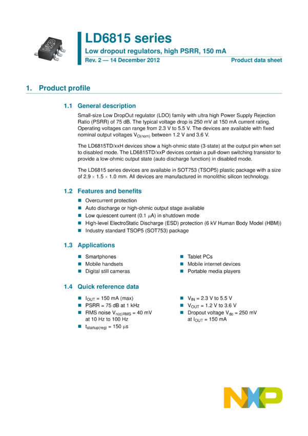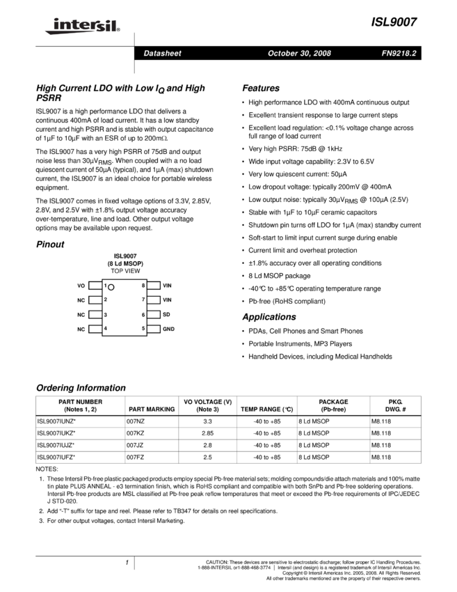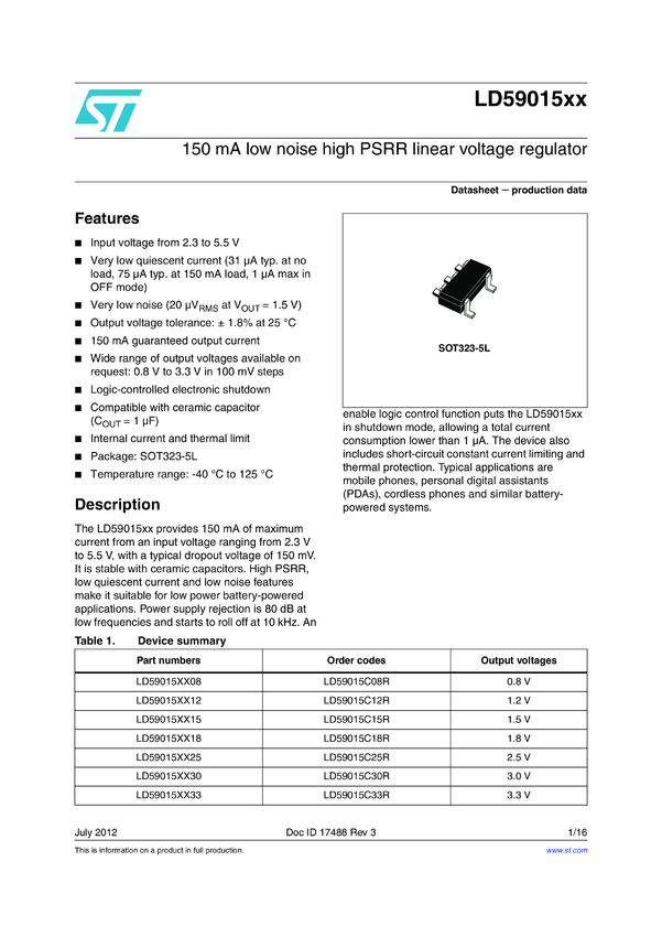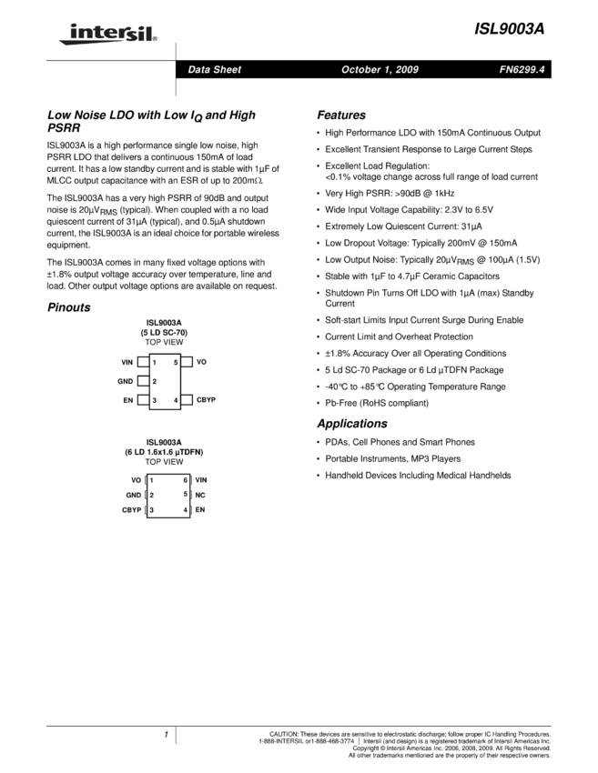 250mA Single LDO with Low I, Low Noise and High PSRR LDO
