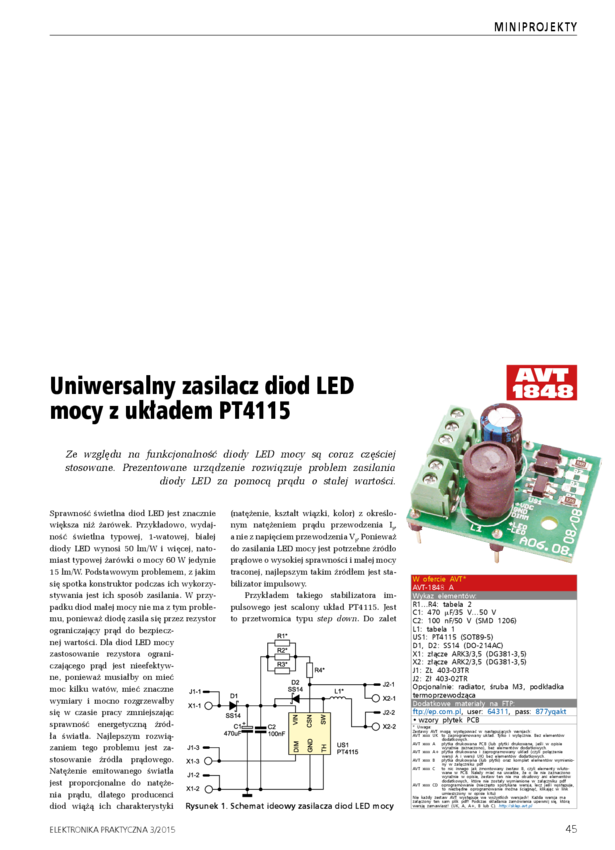 AVT1848 A Uniwersalny zasilacz diod LED mocy z układem PT4115 - płytka drukowana