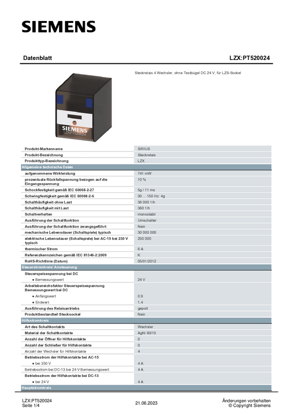 Electromechanical Relay 4PDT 12A 230VAC 19.465KOhm Plug-In