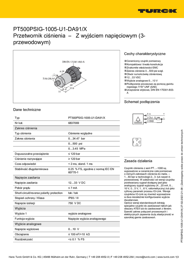Turck Przetworniki ciśnienia 1 szt. PT500PSIG-1003-U1-DA91/X