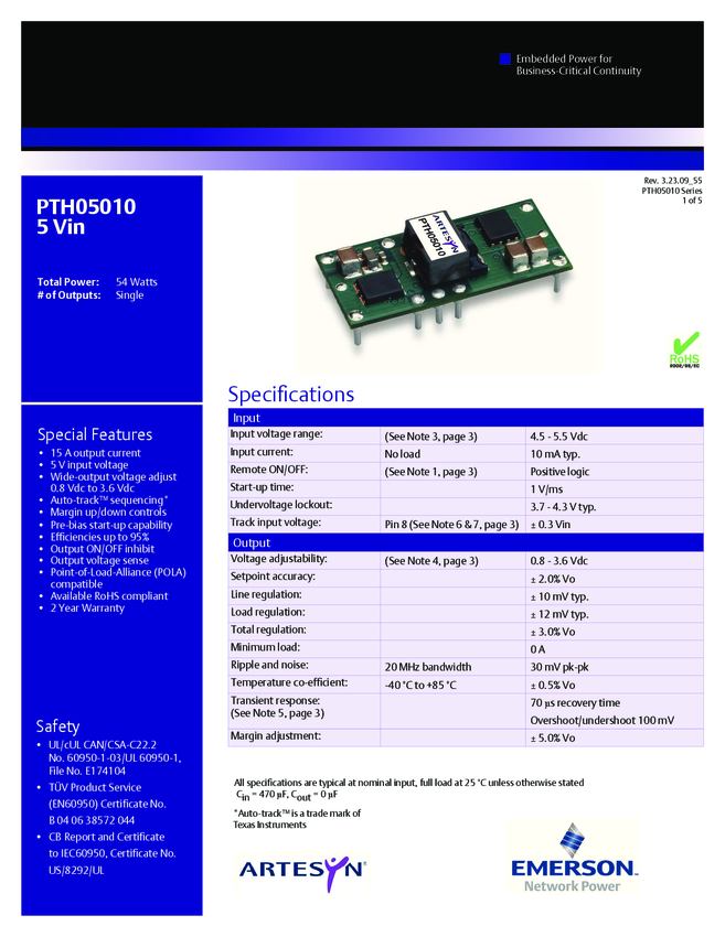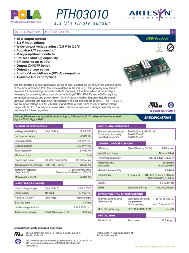 Module DC-DC 1-OUT 0.8V to 3.6V 15A 54W 10-Pin