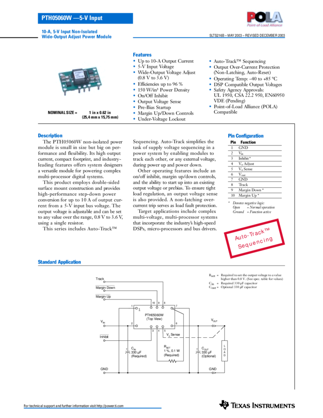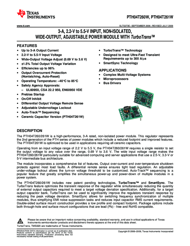 Module DC-DC 1-OUT 1.2V to 5.5V 12A 10-Pin DIP Module T/R