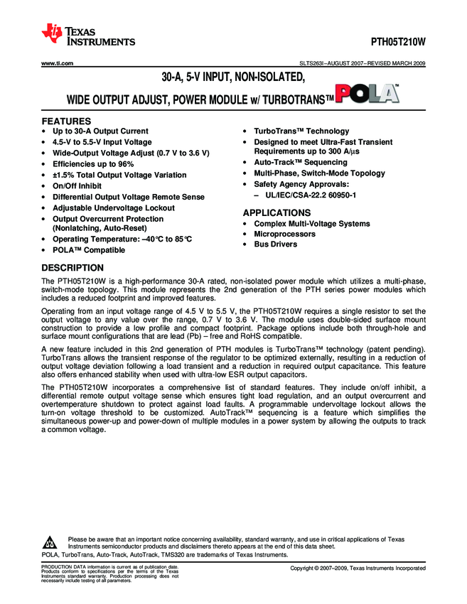 Module DC-DC 1-OUT 0.7V to 3.6V 30A 14-Pin DIP Module T/R