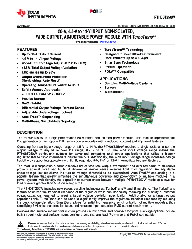 Module DC-DC 1-OUT 0.7V to 3.6V 50A 22-Pin DIP Module Tray