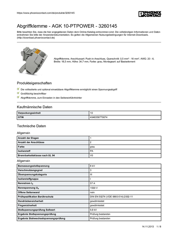 Złącze odgałęzień Phoenix Contact AGK 10-PTPOWER, 3260145.